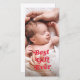 Esta moderna tarjeta de anuncio de natalidad de vacaciones presenta el *saludo "mejor regalo" sobre una foto vertical de marco completo. En la parte de atrás hay dos fotos y texto adicionales para el nombre y las estadísticas de nacimiento de su bebé. Funciona muy bien con fotos en color o en blanco y negro. Es un diseño bonito y moderno que permite que la foto de tu bebé brille. *El color del saludo es personalizable!