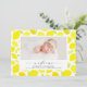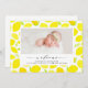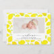 Anuncio de nacimiento de fotos de patrón limón acuarela. ¡Hola, verano! Anuncio de nacimiento de fotos de personalizable con un brillante patrón de limón color agua, escritura elegante y tipografía clásica. Este anuncio fotográfico del verano es perfecto para invitaciones neutrales de género. Los elementos coincidentes están disponibles.