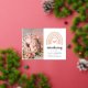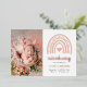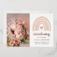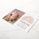 Tarjeta de anuncio de nacimiento fotográfico con un arcoiris boho en colores pastel mudos junto con un corazón rosa en el medio. La palabra "presentando" y el nombre del bebé están en el Relieve metalizado de oro rosa real. A la izquierda está tu foto favorita del recién nacido. El reverso tiene dos imágenes horizontales y su mensaje personalizado. Esta linda tarjeta de anuncio de nacimiento es una gran manera de anunciar la llegada de su bebé recién nacida.