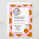 Esta invitación para baby shower de baloncesto rosa y naranja de foto de tamaño 5x7 es una forma adorable de invitar a sus amigos y familiares al día especial de su bebé.