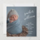 Los elegantes anuncios de nacimiento cuadrado incluyen tu foto favorita del recién nacido, el nombre del bebé en escritura blanca inclinada y estadísticas de nacimiento con letras blancas de moda en la parte delantera y más fotos en la parte posterior. *Usa una foto horizontal o recorta tu foto en un cuadrado con el bebé en la mitad izquierda de la invitación antes de subirla. ***EL TAMAÑO CUADRADO REQUIERE POSTAJE EXTRA - usar sobres de 5" x 7" para la tarifa de franqueo regular. COINCIDIENDO elementos de nuestra colección.
