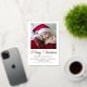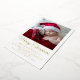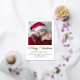 Celebre la temporada navideña y su nueva incorporación con esta encantadora tarjeta de anuncio de nacimiento con foil dorado de Navidad. Con una foto acogedora de su pequeño (totalmente personalizable con su propia imagen), el diseño combina la alegría festiva de las fiestas con una presentación sincera de su bebé. La parte frontal muestra "Feliz Navidad" en elegante letra cursiva con espacio para el nombre del bebé, la fecha de nacimiento y los nombres de los padres, mientras que la parte posterior incluye un dulce mensaje navideño. Perfecto para enviar cálidos deseos y compartir la alegría de la nueva bendición de su familia.