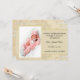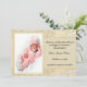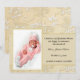 Simplemente hermosa la Invitación perfecta para el bebé que mandar a todos sus amigos y familia anunciando el nacimiento de su hijo. Con una foto en el frente sobre fondo de color arena con un diseño floral de piel blanca cortado junto con toda la información del bebé.