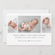 Tarjeta de anuncio de nacimiento moderna con collage de 3 fotos y tipografía clásica.