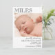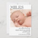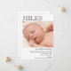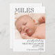 Presentamos nuestro moderno y elegante anuncio de natalidad, la manera perfecta de presentar a su pequeño al mundo. Esta tarjeta de bonito diseño presenta una foto de su recién nacido junto con una mezcla de caligrafía moderna y fuentes tradicionales, creando un aspecto atemporal y sofisticado. Celebra esta alegre ocasión con estilo y gracia con nuestro anuncio de nacimiento personalizado.