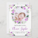 Anuncio de nacimiento morado floral gracias tarjet