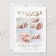 Bienvenido al mundo moderno anuncio de cumpleaños geométrico dorado con varias fotos. Parte de una colección. Fondo geométrico con diseño de efecto dorado.
