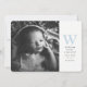 Una sencilla introducción para tu nuevo pequeño que incluye una sola foto, una gran inicial azul bebé, espacio para estadísticas y nombres de los padres junto con un respaldo azul coordinado con puntos. Los colores del texto y del respaldo se pueden cambiar haciendo clic en el botón "personalizar".