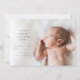 Este anuncio de nacimiento presenta un texto simple con una orientación lateral. En la parte trasera hay un fondo lila que se puede editar con un espacio para otra foto.