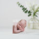 Superposición de tipografía blanca simple de Hello y la fotografía de tu hermosa bebé en esta tarjeta postal de anuncio de nacimiento simple. Personaliza esta pequeña tarjeta con los detalles del nacimiento de tu recién nacido para una tarjeta minimalista pequeña y encantadora. Foto completa en la parte frontal y rosa sólido en la parte posterior.