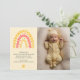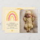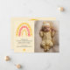 ¡Bienvenido a tu pequeño sol con esta adorable tarjeta de presentación de nacimientos! Este animado diseño cuenta con un alegre arco iris adornado con flores dulces de pasto y corazones juguetones. La paleta de colores amarillo y coral crea un ambiente cálido y alegre, perfecto para celebrar la llegada de tu preciado chica. ¡Genial para los bebés de primavera y verano! Personalice la tarjeta con una foto vertical de su recién nacido y edite fácilmente las plantillas de texto para una tarjeta de invitación de recién nacido personalizado.