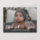 Postal moderna para el anuncio de nacimiento de bebé con foto. Diseño que incluye escritura de agradecimiento, foto única del bebé, estadísticas de nacimiento, fecha y un nombre en el frente. Personaliza con otra foto y tu mensaje de agradecimiento en la parte de atrás.