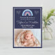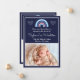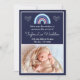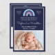Esta tierna y caprichosa tarjeta de invitación para bebés presenta un arco iris bohemio en azul y rosa con corazones blancos en un fondo azul marino. El texto combina el guión manuscrito y las fuentes serif para un aspecto elegante y moderno. Puede personalizarse con las estadísticas de nacimiento de su bebé, como el nombre, tamaño, fecha y hora de nacimiento, y usted puede cambiar las fotos de la plantilla por su cuenta.