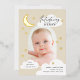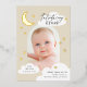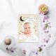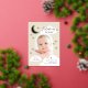 Un diseño lúdico y elegante que presenta una foto en forma de arco moderno, emparejada con fuentes elegantes, estrellas dibujadas a mano, nubes y una luna creciente. En la parte trasera hay un collage de 3 fotos y más estrellas. Asegúrese de visitar la colección para ver más.