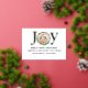 Tarjeta de anuncio de nacimiento moderna con corona de oro y fuente manuscrita que dice "alegría" Puedes incluir una foto de tu bebé recién nacido en el centro y los datos del bebé en la parte inferior.