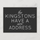 Anuncio de tarjeta de nueva dirección We Have a New Address Card con una tipografía moderna y fuente.