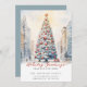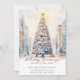 Este anuncio festivo de Navidad para informar un cambio de domicilio incluye el dicho "Saludos de Navidad desde nuestro nuevo hogar" con una hermosa calle nevada de una ciudad pintada con acuarela y un gran árbol de Navidad. El anuncio es perfecto para enviar a amigos y familiares durante la temporada de fiestas para informarles sobre su nueva dirección. La parte frontal del anuncio incluye el dicho y la escena de la calle nevada de la ciudad pintada con acuarela, y contiene su nueva dirección e información de contacto. El diseño general es festivo y encantador, y el anuncio seguramente pondrá una sonrisa en los rostros de sus seres queridos.