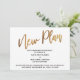 La distinción de este conjunto se debe a la fuente moderna de escritura a mano utilizada para las frases de acento. En esta pieza, se utilizó la fuente de escritura a mano para crear un gráfico simple que dice "Nuevo Plan", grande y en negrita. El gráfico ha sido mejorado por un efecto de oro suave falso-metálico. La redacción en mi texto de marcador de posición está orientada a una boda que se pospone, pero si su evento se cancela, este diseño también podría adaptarse a esa necesidad. Utilice los campos de la plantilla para agregar sus detalles personales y hacer que este diseño moderno y único sea suyo. El fondo se puede cambiar a cualquier color que prefiera. Por favor, comuníquese con nosotros para cualquier solicitud especial o para obtener ayuda para personalizar. // 105 //