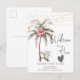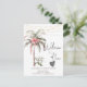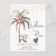Palmera en acuarela con flor tropical y luces de cuerda.