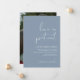 Con todas las restricciones de la pandemia y los protocolos de seguridad, notifica a tus amigos y seres queridos sobre el aplazamiento de tu boda con esta tarjeta de anuncio minimalista moderna que dice “el amor es paciente” en letra de caligrafía y tema de color azul polvoriento. También puedes personalizar la foto en la parte posterior.