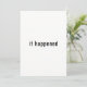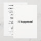 Esta tarjeta de anuncio de boda minimalista moderna y elegante presenta la simple frase "Ocurrió" en la fuente y la información de su recepción de boda en la parte posterior. Fácil de personalizar con su propio texto. Más artículos con este diseño se pueden encontrar en mi It's Happening Minimalist Photo Wedding Suite en mi tienda Zazzle: