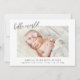 Bienvenido tu nuevo pequeño al mundo con este precioso anuncio de nacimiento "Hola Mundo". ¡Añade tus fotos, estadísticas de nacimiento y un mensaje!