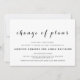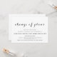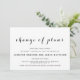 Para parejas que desean un diseño de boda simple pero elegante. Elke Clarke © El diseño incluye los nombres de la novia y el novio en una fuente de escritura elegante con las palabras "cambio de planes". Se muestra en negro y blanco, pero se puede personalizar según los colores de su boda para el texto y el fondo. Agregue otros gráficos, fotos o monogramas para personalizar esta plantilla.
