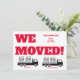 Señale claramente la transición de su negocio con este moderno anuncio de mudanza de oficina. El diseño presenta dos camiones de mudanza de plataforma plana negros que llevan íconos detallados de escritorio y computadora de oficina, junto con un titular rojo negrita "¡NOS MUDAMOS!" imposible de pasar por alto. Establecido sobre un fondo blanco limpio, esta plantilla ofrece un diseño estructurado para el nombre de su empresa, nueva dirección, número de teléfono y sitio web. Es una opción perfecta para oficinas corporativas, empresas de tecnología o servicios profesionales que deseen un diseño sencillo y enfocado en la industria para informar a sus clientes sobre su nueva ubicación.
