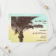 Anuncie su boda de playa con estilo con este moderno anuncio de boda de puesta de sol de palmera ¡salve la fecha! Personalice fácilmente con su información. Seleccione el botón de personalizar para cambiar el estilo de fuente, color y tamaño.