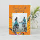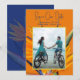 Anuncios de boda para guardar la fecha con flores de ave de paraíso y plantilla de foto. Una tarjeta llamativa con orientación vertical y foto enmarcada sobre un fondo de brillantes flores hawaianas naranjas. Se utilizan fuentes modernas en color azul oscuro. Azul oscuro a juego en la parte posterior con otra imagen floral. Una foto de la pareja elimina la necesidad de nombres, o agrega nombres a las líneas de fecha y ubicación. Este diseño también viene como descarga instantánea.