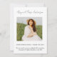 Celebra tu graduación de 2023 con estilo con nuestra tarjeta de anuncio de foto vertical con letra moderna de Zazzle. Este diseño elegante presenta tu foto favorita en un diseño vertical, acentuado con tipografía contemporánea en una fuente de letra estilizada. Perfecta para anunciar tu logro a amigos y familiares, esta tarjeta es totalmente personalizable, lo que te permite agregar tu toque personal con tu nombre, título y detalles de graduación. Impresa en papel de alta calidad, esta tarjeta de anuncio seguramente impresionará y se convertirá en un recuerdo preciado durante años. ¡Ordena ahora y haz que tu anuncio de graduación sea inolvidable!