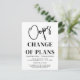 ¡Oops! Haz saber a tus familiares y amigos que has cambiado la fecha de tu boda con esta tarjeta postal de aplazamiento de boda simple y elegante. Están disponibles opciones de edición.