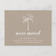 Anuncia tu mudanza a tus amigos y familiares con nuestra tarjeta moderna de palmera. Nuestro anuncio de mudanza tropical presenta una hermosa palmera dibujada en blanco sobre un fondo azul. Visita nuestra tienda para ver toda nuestra colección de mudanzas.