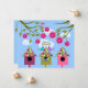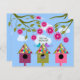 © 2011 Socialite Designs. Aviso de traslado de pájaros caprichosos en pajareras coloridas con flores de sakura en flor.