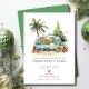 Este anuncio festivo de mudanza presenta el dicho "Saludos Navideños desde Nuestro Nuevo Hogar Dulce Hogar" con una hermosa autocaravana retro con palmeras y decoraciones navideñas. El anuncio es perfecto para enviar a amigos y familiares durante la temporada navideña para informarles sobre su nueva dirección. La parte frontal del anuncio presenta el dicho y la escena de la autocaravana retro, e incluye su nueva dirección e información de contacto. El diseño general es festivo y único, y el anuncio seguramente pondrá una sonrisa en los rostros de sus seres queridos.