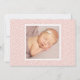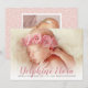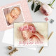 La simple y dulce tarjeta de anuncio de nacimiento con foto presenta a su recién nacido con una foto frontal de 5 x 7 con sangrado completo que incluye un nombre superpuesto en letra script rosa intensa y dramática con detalles de nacimiento y un mensaje de "Amor" de los padres. Un patrón de lunares rosa suave con una foto cuadrada adicional adorna la parte trasera. Los colores de texto rosa y gris carbón y el color trasero suave se pueden modificar para que coincidan con sus fotos. Todo el texto es totalmente personalizable.