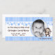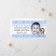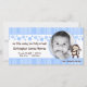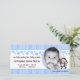 Este anuncio de foto del nacimiento de un niño azul adorable con tamaño 4x8 está a la moda y a la moda. Está impreso en papel liso, vibrante y mate de 110 libras de peso. Contiene un 50% de contenido reciclado. Perfecto para sus invitaciones y invitaciones de eventos más formales. Estos vienen con sobres blancos estándar.