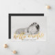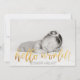 Anuncie la llegada y nacimiento de su recién nacido con estos elegantes y modernos textos cursivos "Hello World" sobre su foto personalizado con información en la parte inferior.