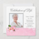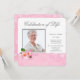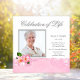 Anuncios de servicio conmemorativo de celebración de la vida con elegante foto de flor de cerezo rosa, plantilla de invitación e inserto. Esta bonita invitación para el servicio fúnebre de la mujer con foto rosa se personaliza fácilmente para su evento simplemente eligiendo el botón "¡Personalízalo!" para comenzar a agregar los detalles de su evento, estilo de fuente, tamaño y color de la fuente, y redacción. Tenga en cuenta que todos los diseños de pegatinas, tarjetas e invitaciones que encontrará en Zazzle son gráficos impresos sin joyas, lazos, partes o piezas elevadas, en relieve o añadidas.