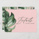 Tarjeta de detalles de boda de follaje tropical de hoja de palma acuarela. Un diseño elegante, que es parte de una colección de boda moderna minimalista de moda. Con texto de escritura con efecto dorado.