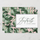 Tarjeta de detalles de boda con follaje tropical de hoja de palma acuarela. Un diseño elegante, que forma parte de una colección de bodas minimalista moderna de moda.