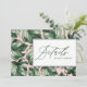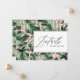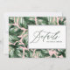 Tarjeta de detalles de boda con follaje tropical de hoja de palma acuarela. Un diseño elegante, que es parte de una colección de bodas minimalista moderna de moda.
