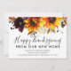 Moderno otoño otoño acuarela ruidosa Floral Sunflower Peony Feliz Día de Acción de Gracias desde nuestro nuevo hogar Hemos mudado nuevo cambio de hogar de dirección Invitación de vacaciones en movimiento