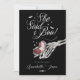 Nada grita "¡I Boo!" como un compromiso gótico inspirado en Halloween. Prepárense para una celebración hermosa como ninguna otra con nuestro esqueleto "Hasta la muerte nos hacen parte" y floral invitación de compromiso gótica de Halloween. Nuestra hermosa invitación de compromiso gótico boda presenta nuestro esqueleto acuarela pintado a mano sosteniendo una caja de anillo con "¡Ella dijo que yo soy Boo!" con murciélagos y estrellas. El reverso presenta un diseño en forma de ataúd con una plantilla de fotografía personalizada que se muestra en forma de ataúd. Nuestro boda temático de Halloween le hará decir "I Boo" a este desconcertante romanticismo. Ideal para bodas de Halloween o parejas que buscan un ambiente boda de estilo gótico oscuro. Todos los ilustraciones son nuestra obra de arte original. Diseño y arte de Moodthology Papery