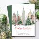 Este anuncio festivo de Navidad para comunicar un cambio de domicilio incluye la frase "Saludos de Navidad desde nuestro nuevo hogar" con una hermosa escena urbana al estilo acuarela con árboles de Navidad dispersos. El anuncio es perfecto para enviar a amigos y familiares durante la temporada de fiestas para informarles sobre su nueva dirección. La parte frontal del anuncio presenta la frase y la escena callejera nevada al estilo acuarela, e incluye su nueva dirección e información de contacto. El diseño general es festivo y encantador, y el anuncio seguramente pondrá una sonrisa en los rostros de sus seres queridos.