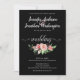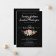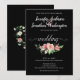 Este diseño de invitación de boda presenta una mezcla de tipo contemporáneo y tradicional junto con un ramo tradicional de rosas rosadas sobre un fondo negro. El diseño coincide con la colección de bodas Smell the Roses.
