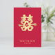El carácter chino "Doble Felicidad" escrito xi o "hsi" en mandarín y pronunciado "shuang-xi" es un carácter chino bien conocido utilizado tradicionalmente en las bodas chinas como símbolo de amor, felicidad y suerte para la pareja recién casada. El color rojo es un color auspicioso y popular en la cultura china. Simboliza suerte, felicidad y alegría. El uso de fuentes contemporáneas completa el diseño. Un diseño verdaderamente adecuado para cualquier celebración de boda china.