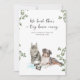 The playful phrase “We heard there’s a tiny human coming” adds a lighthearted tone that pet-loving families will instantly connect with. Soft greenery accents and a clean, timeless layout keep the focus on the adorable pet duo while creating a design that feels warm, modern, and heartfelt.