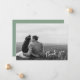 La simplicidad moderna se une al romanticismo caprichoso. Esta tarjeta de agradecimiento boda presenta una hermosa mezcla de escritura a mano inspirada en un sabio fondo verde, acentuada con un ilustracion botánico sutilmente elegante. La tarjeta perfecta para mostrar sus fotos de bodas y expresar su sincero agradecimiento.