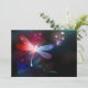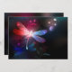 Flor, vuelo, libélula roja, con alas transparentes y detalladas sobre fondo oscuro, nocturno y luminoso con plantas tropicales y luciérnagas. Lluvia roja.